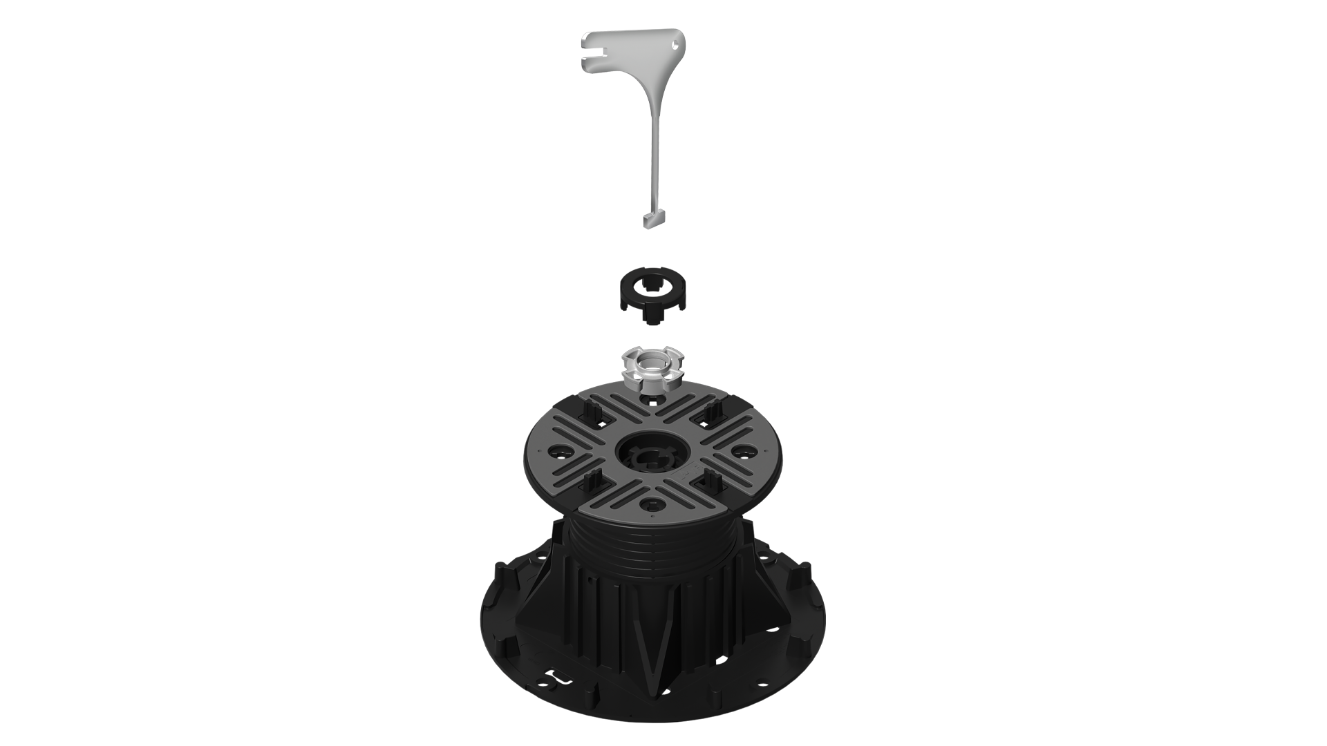 Part of the all-in-one adjustable pedestal system, LevelPro adapts to rooftop slopes automatically. For lightweight pavers or flat surfaces, the integrated Level Lock nut keeps everything securely in place. With fewer components and a wide height range, it’s a smarter, simpler way to get the job done.