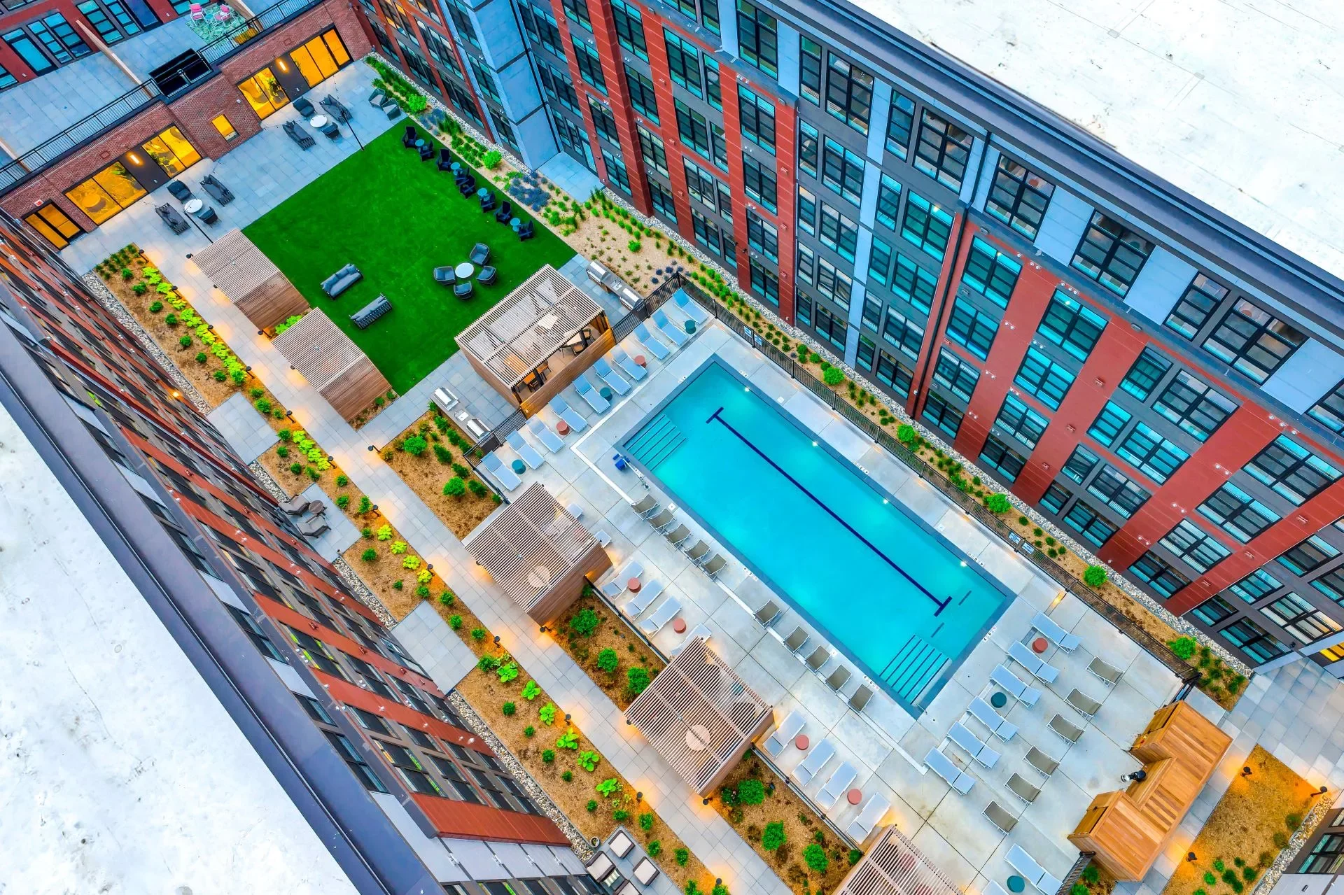 Our Level Pro pedestal system and IPE wood deck tiles played a key role in shaping the building’s outdoor environments, delivering durability, natural warmth, and a refined aesthetic. The result is a rooftop experience that feels like a breath of serenity above the concrete landscape - elevated, balanced, and effortlessly chic.
